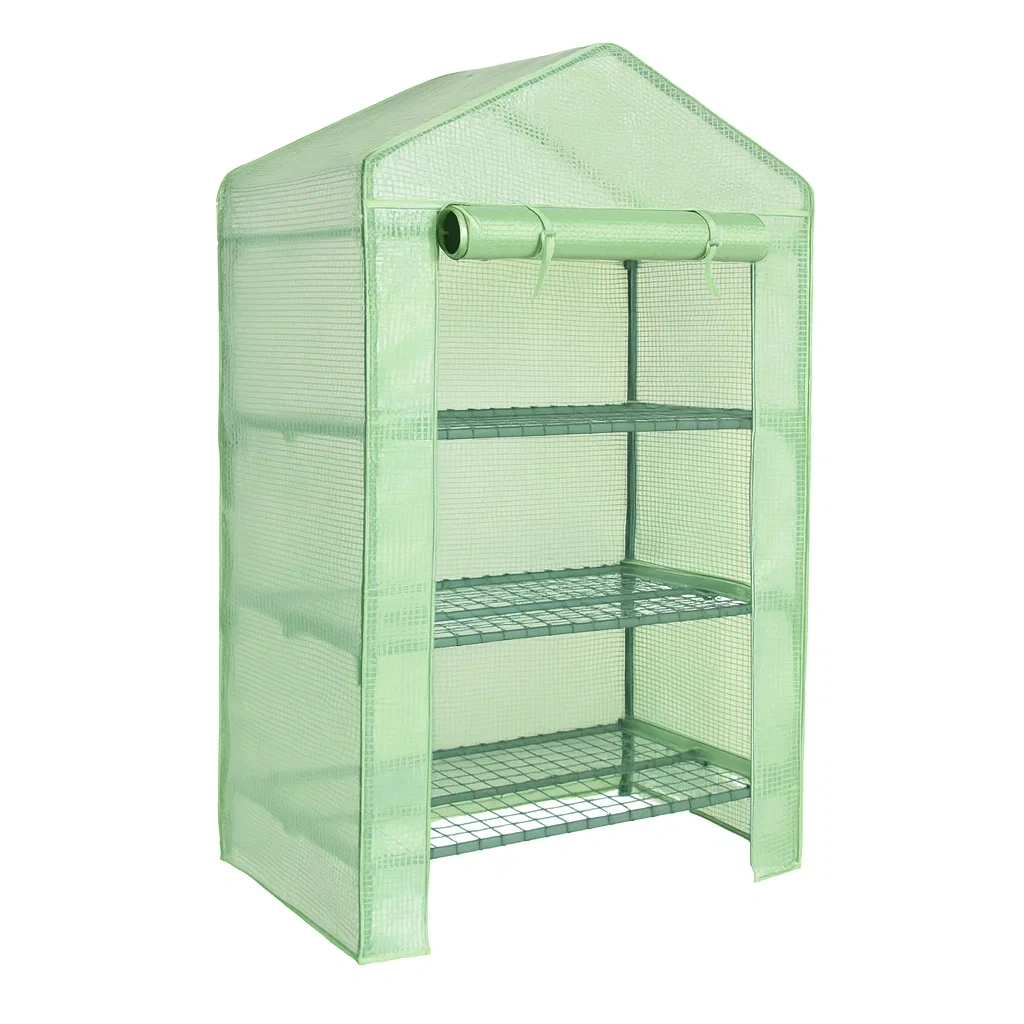 Serra in Metallo Verde con Copertura in PVC e 3 Ripiani
